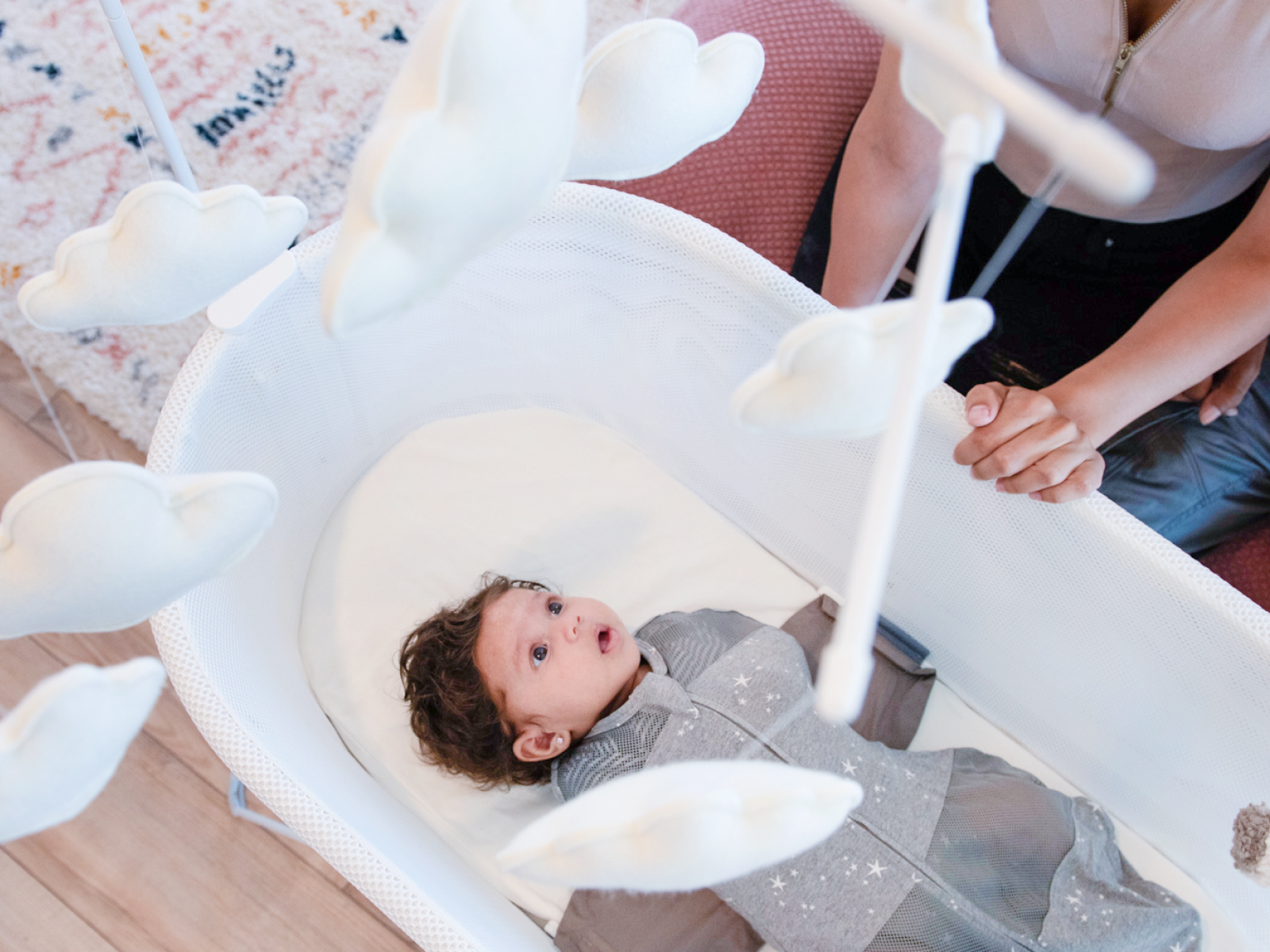 Sky securely attaches to SNOO so, over the first 5 months, your lovebug can enjoy the scenery floating by. Once your tot graduates from SNOO, Sky doubles as a timeless piece of nursery décor. Simply detach it from its mount and hang it from the ceiling.